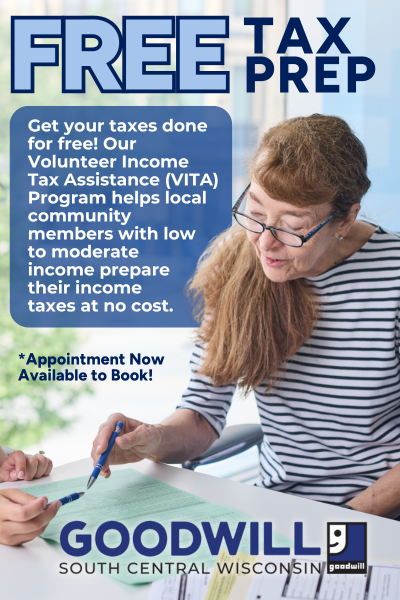 We are a local 501(c)(3) nonprofit that provides community members in South Central Wisconsin with supported employment, job skills training, stable housing and income tax preparation assistance. When you donate your gently used clothing and household items at Goodwill, you help to fund our good work.