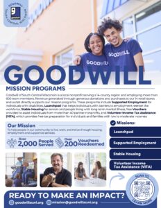 For over 50 years, Goodwill of South Central Wisconsin has served neighbors right here in our local community with several essential programs and services.