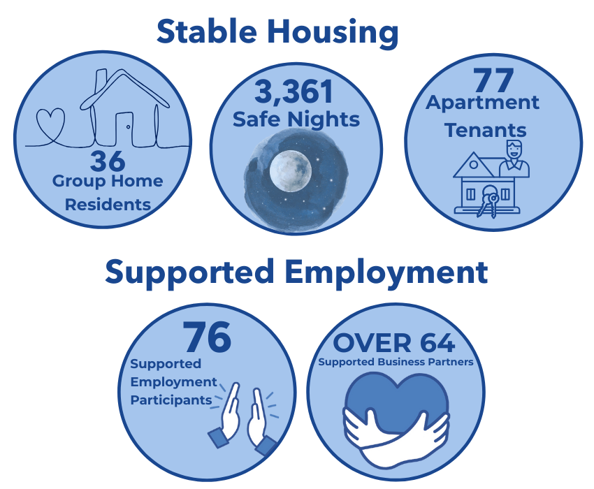 Our deepest purpose is to help people in our community experience the good that life can offer. We are honored to support so many amazing individuals in overcoming barriers to housing and work through our community programs and supportive services – their outcomes and success stories represent our mission in action.